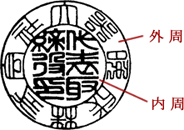 - 外周に「○○会社」などの正式な会社名を、内周に「銀行之印」と彫ります。