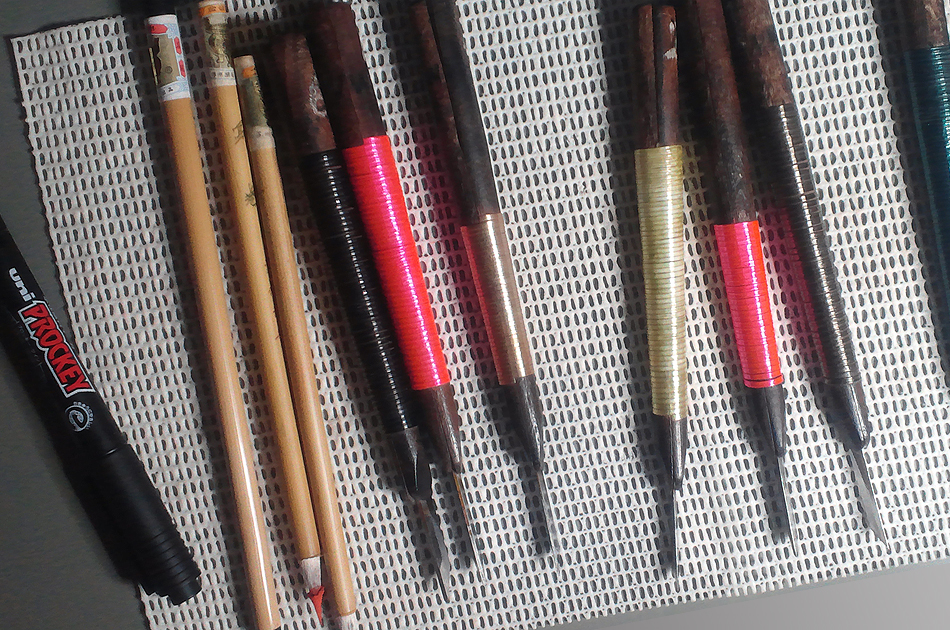 | 作品の良し、悪しを左右します。 文字を逆に入れるのでとても高い技術が必要になります。 |