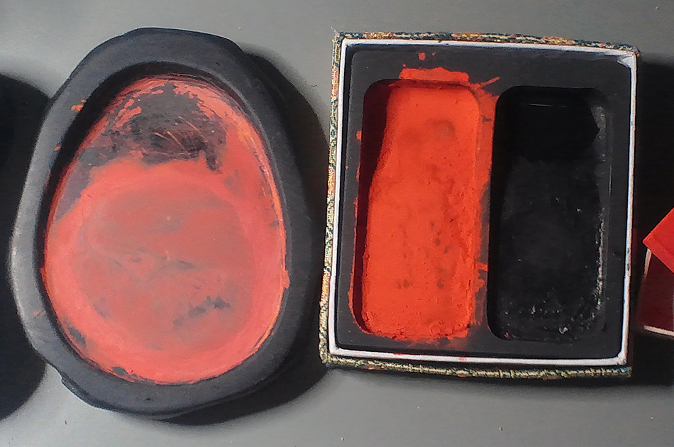 | この作業を丁寧にすると、次の仕上げが綺麗になります。 印刀(左上の写真)を使って彫ります。 |